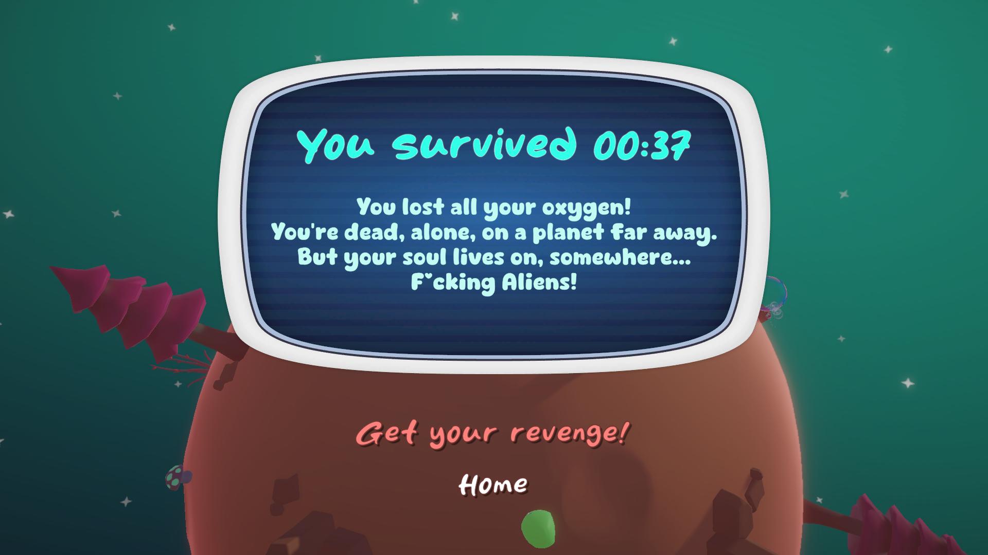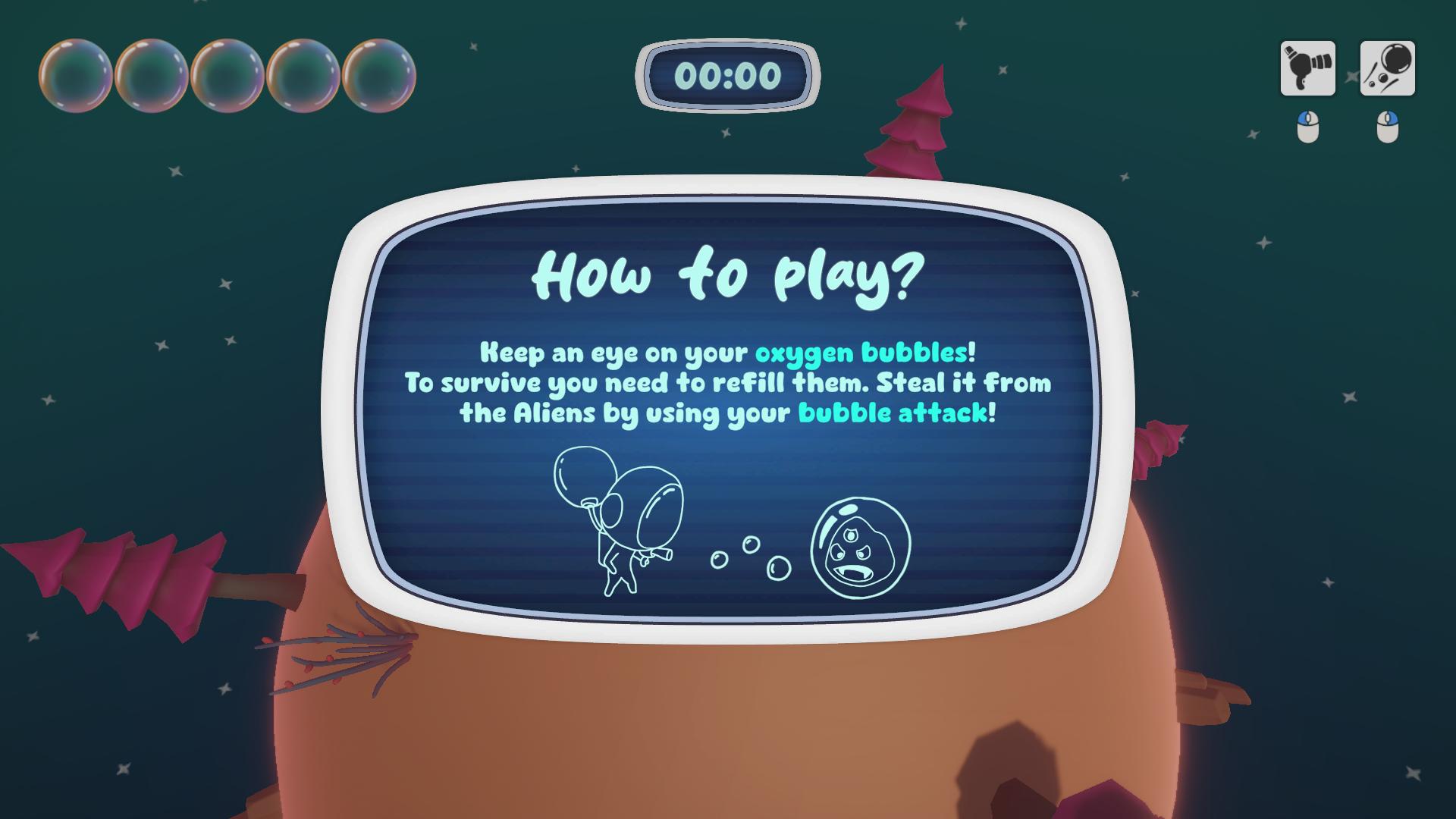 All on your own, dropped on this planet, you have to fight to keep your oxygen bubble! Hurry up, this precious air represents your life in the game, but you know what...?